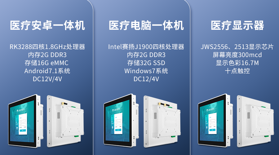 觸想智能標準款工規(guī)醫(yī)療觸控顯示設(shè)備分3款:醫(yī)療安卓一體機、醫(yī)療電腦一體機、醫(yī)療顯示器??偟膩碚f,醫(yī)療電腦一體機,系統(tǒng)成熟,運行穩(wěn)定,兼容性強;醫(yī)療安卓一體機,拓展性強,二次開發(fā)便利;醫(yī)療顯示器,顯示分辨率高,圖像清晰。三款設(shè)備可以滿足不同醫(yī)療場景需要。