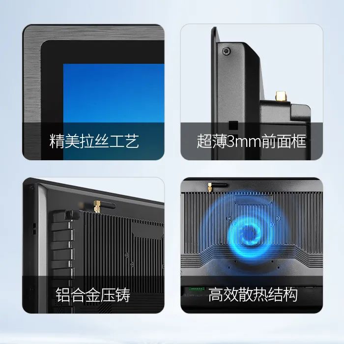 C款通用式系列產(chǎn)品,自帶光澤與金屬質(zhì)感,拋光工藝,簡約時尚,10mm圓角窄邊框設(shè)計,展現(xiàn)科技時尚美學(xué);支持桌面、壁掛、懸臂等多種安裝方式,適用于自動化產(chǎn)線、人工智能、智慧醫(yī)療和物聯(lián)網(wǎng)等場景與領(lǐng)域。