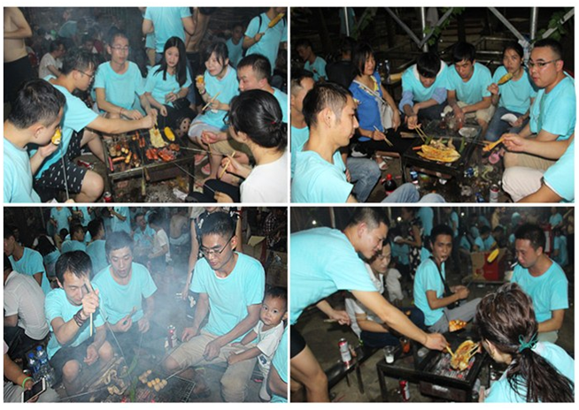在燒烤過(guò)程中,大家分工明確,有人洗菜,有人生火,有人串制食物,配合默契,場(chǎng)面好不熱鬧!趁著旺盛的炭火,燒烤正式拉開(kāi)了帷幕!