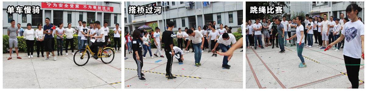 本屆運動會共有六組參賽隊伍,既有團隊賽,也有對抗賽。其中團隊賽包括:拔河、齊心協(xié)力、無敵風火輪;對抗賽包括:單車慢騎、袋鼠接力跳、搭橋過河、我最搖擺、跳繩比賽、你比我猜、歡樂嘭嘭嘭、夾湯圓、撕名牌。