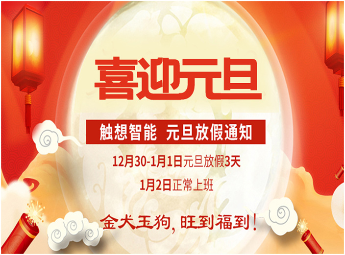2018元旦節(jié)假期將至,根據(jù)《國務院辦公廳關(guān)于2018年部分節(jié)假日安排的通知》及結(jié)合觸想智能公司實際情況,針對2018年“元旦”節(jié)放假時間為2017年12月30日—2018年1月1日放假三天,1月2日正常上班。