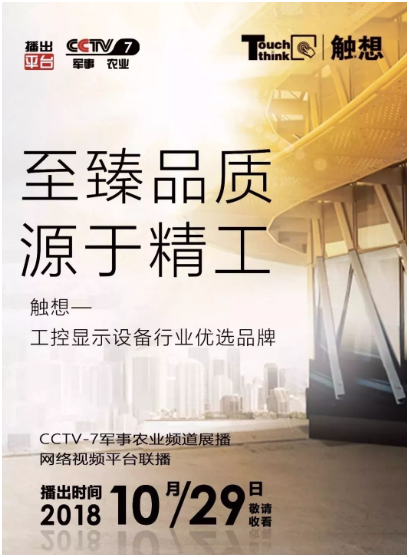 有著“卓越領(lǐng)先的技術(shù)企業(yè)”之稱的深圳觸想智能股份有限公司,憑借“精湛的行業(yè)技術(shù)、專業(yè)的研發(fā)團(tuán)隊(duì)、強(qiáng)大的生產(chǎn)能力”在行業(yè)中脫穎而出,贏得CCTV《發(fā)現(xiàn)品牌》欄目長期的關(guān)注和高度的認(rèn)可,不僅在2017年9月評選觸想智能為“工控顯示設(shè)備行業(yè)優(yōu)選品牌稱號”。并且于2018年10月再次選擇觸想智能品牌在CCTV-7優(yōu)選品牌進(jìn)行展播。