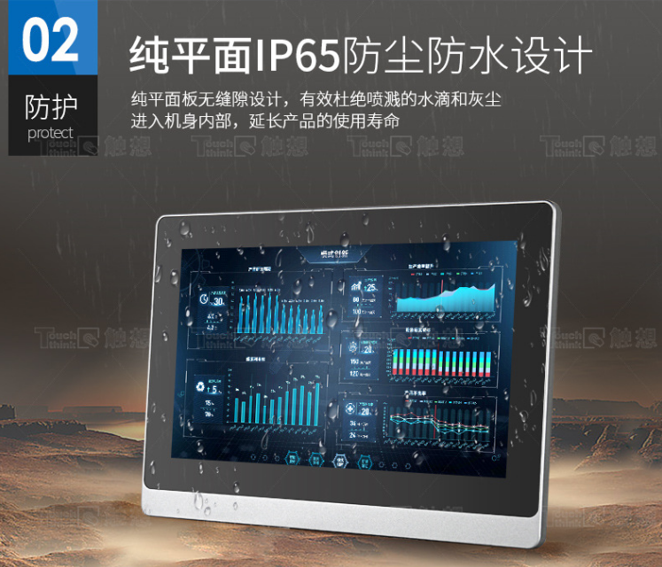 產(chǎn)品面板采用純平無縫隙設(shè)計,可高達IP65防塵防水等級,增強型面板具備強防摔性、抗沖擊性、抗磁電干擾性、可塑性、導(dǎo)熱性等特征,能適應(yīng)各種惡劣環(huán)境,延長產(chǎn)品使用壽命。